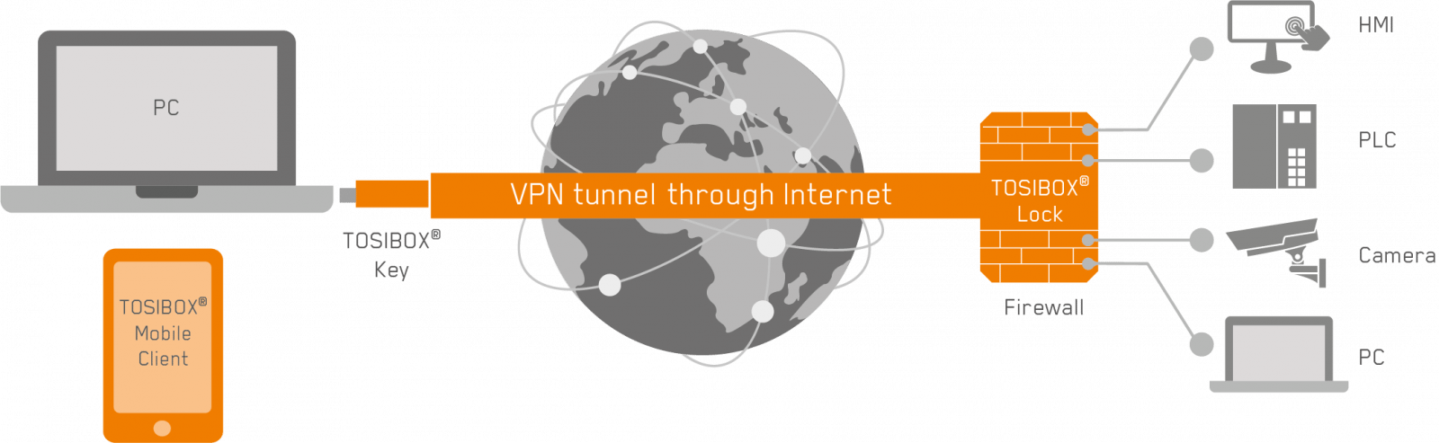 Lock 500 與所有現有的 TOSIBOX® 產品兼容。 產品的模組化使網絡的擴展變得容易和快速。